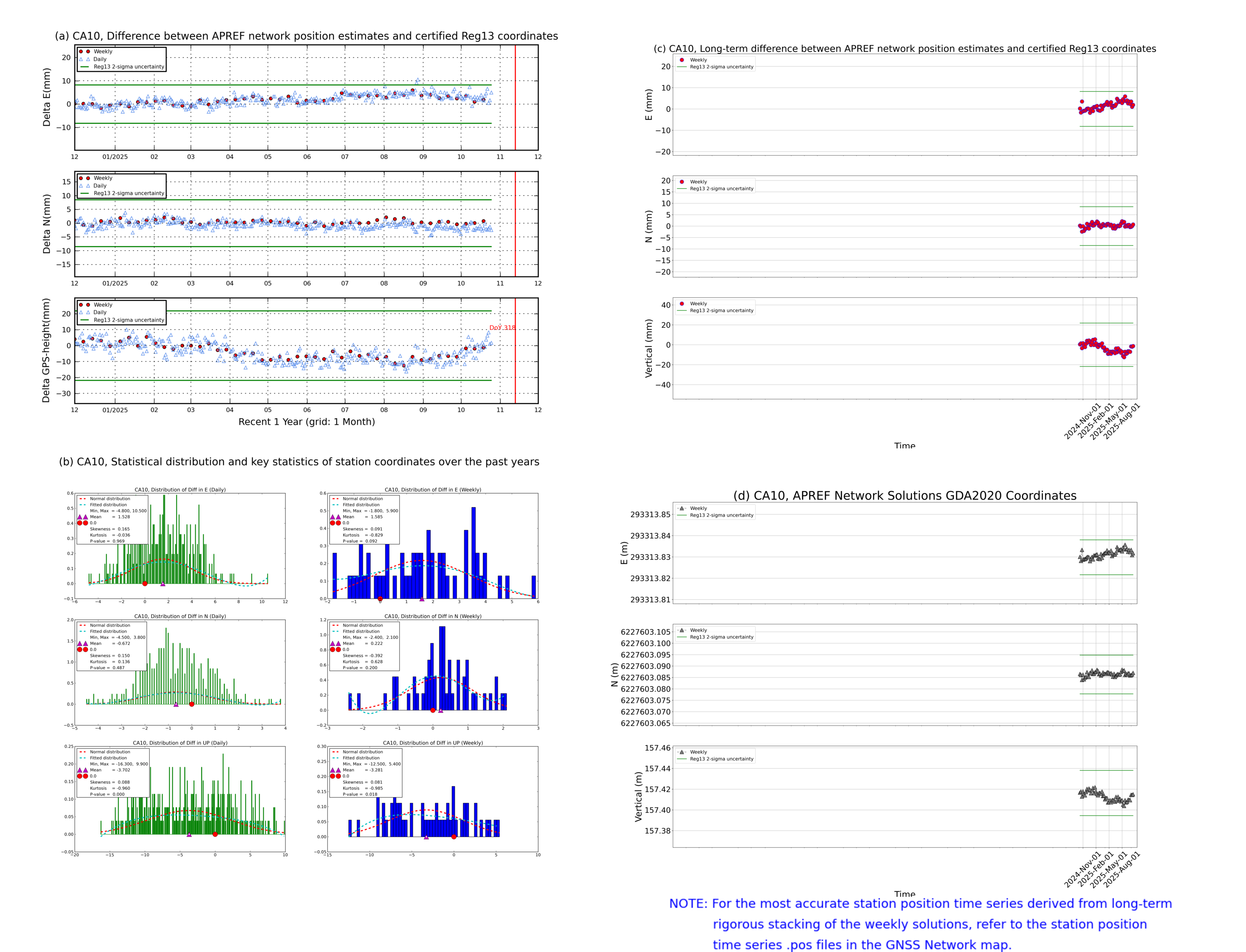 Note: The above graph indicates the long-term stability of a CORS and does not represent actual daily movement. The results are calculated daily and trends are monitored. The diagrams shown are updated regularly. Daily differences in CORS position at the millimetre-level are within the limits (noise level) of current GNSS processing techniques.